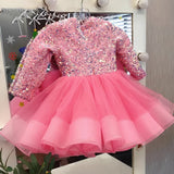 Elegant Baby Girl Sequins Christmas Dress Toddler Birthday Party Ball Gown