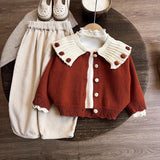 Girls Christmas Sweater Cardigan Bottoming Shirt Pants Three-piece Set
