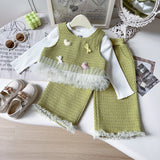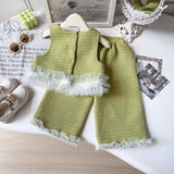 Girls' New Mesh Lace Knitted Vest Wide-leg Pants Two-piece Set