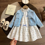 Girls Spring Suit Girls Sweater Cardigan Dress Two-piece Suit