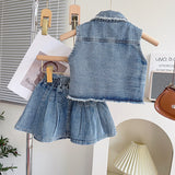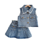 Girls Summer Suit Set Denim Pleated Skirt Two-piece Set